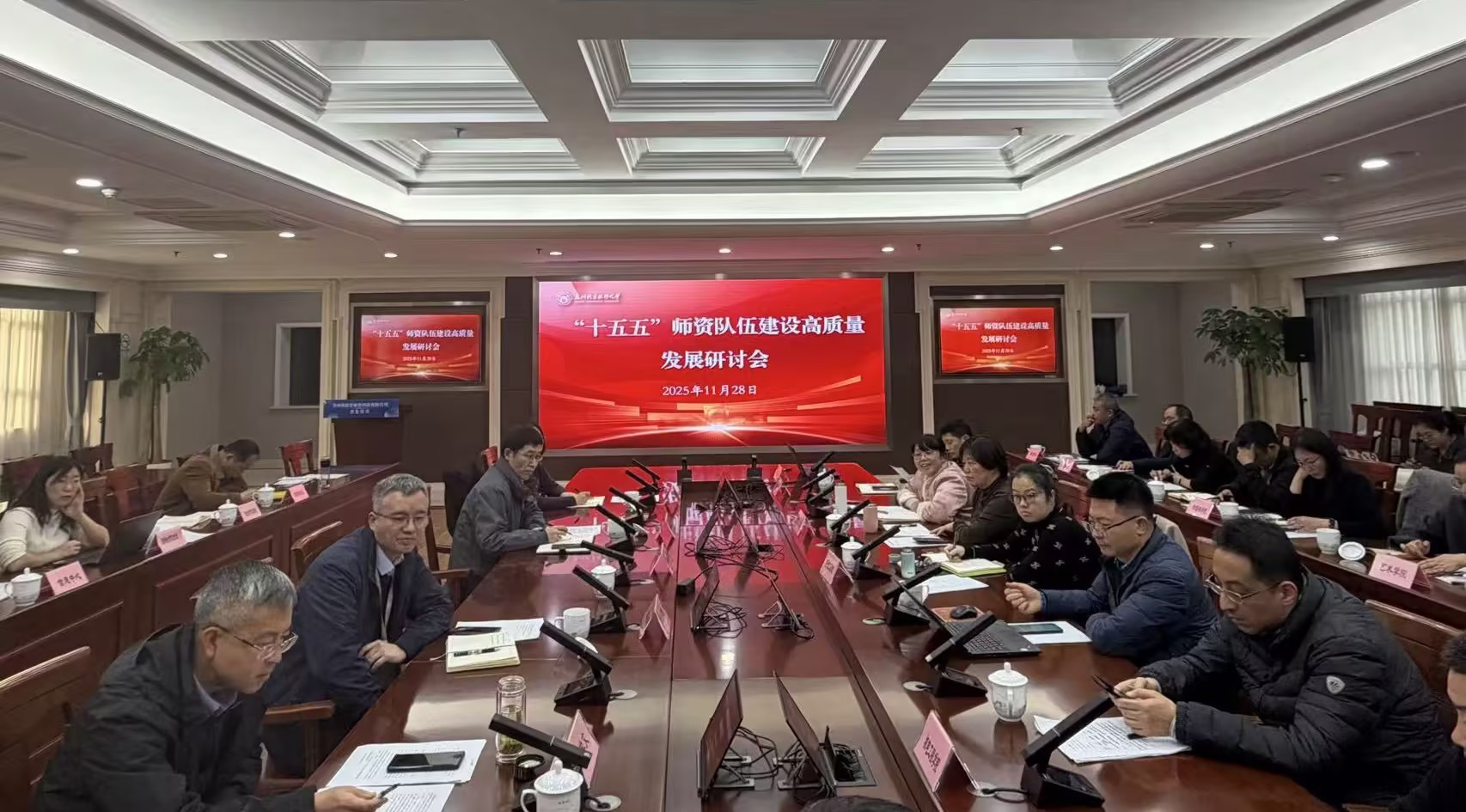 组织人事部、教务处、科技处以及教师发展中心分别以“学校‘“十五五”’师资队伍建设规划思路与框架”“以协同创新为核心,构建高水平教学团队”“以有组织科研为路径,激发科技创新团队”以及“德智双驱引领,赋能教师成长”为题作专题汇报。教育与人文学院、电子信息工程学院以及机电工程学院分别以“诊断与处方:教育与人文学院师资队伍核心问题与破解之道”“深化产教融合,构建高水平‘双师型’教师队伍实践与思考”“绩效分配改革:激发学院办学活力的实践与思考”作经验分享。